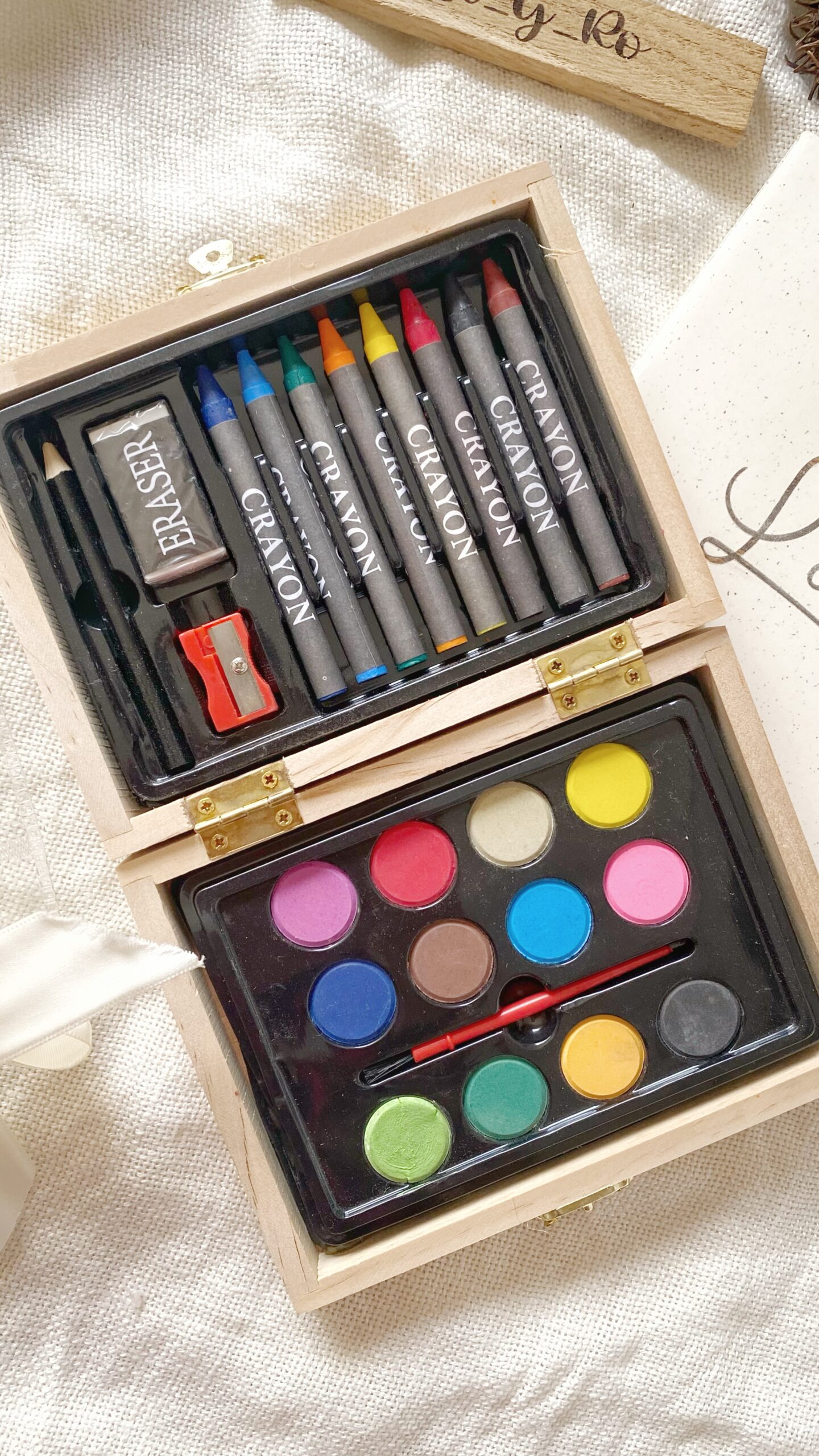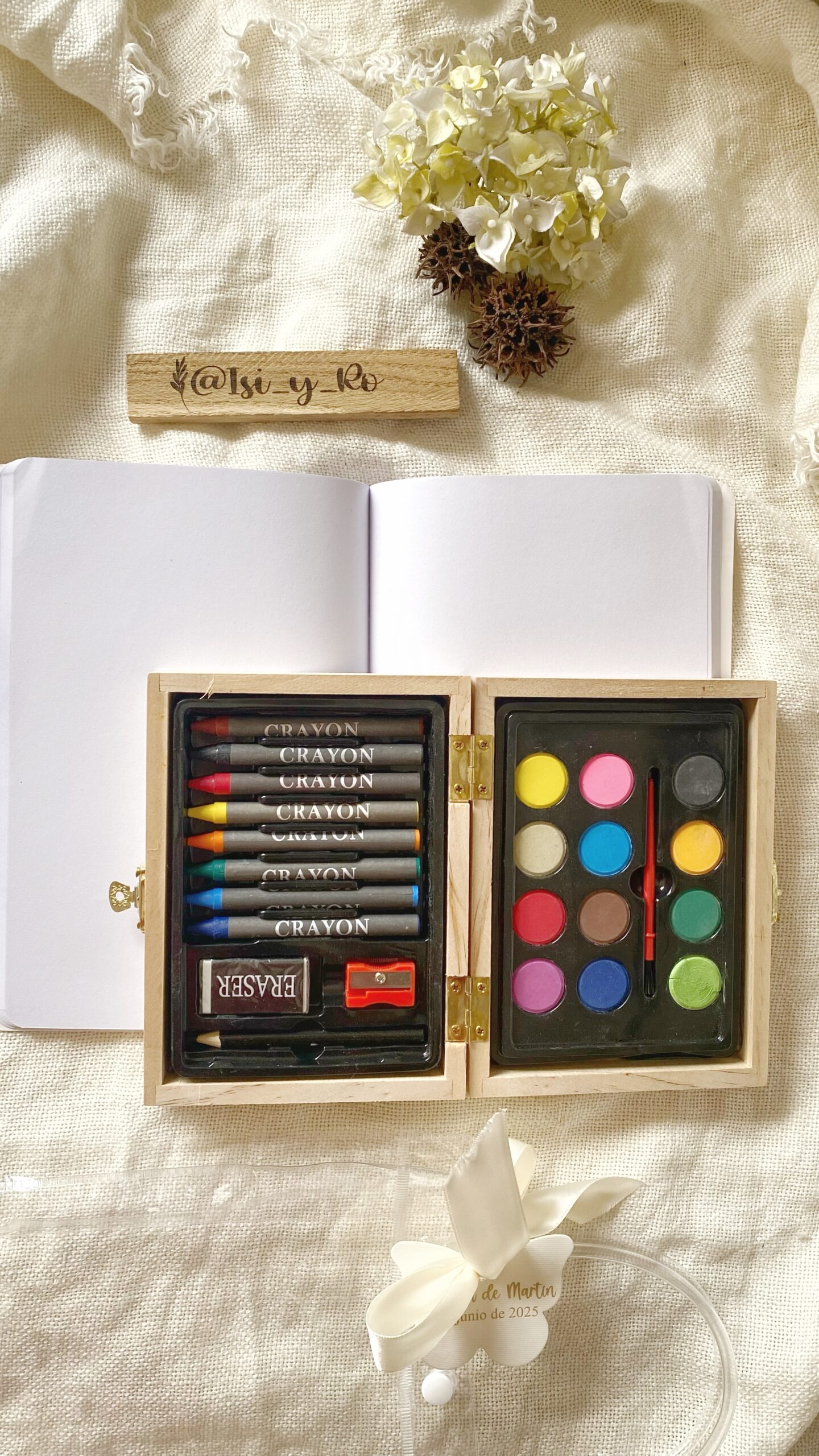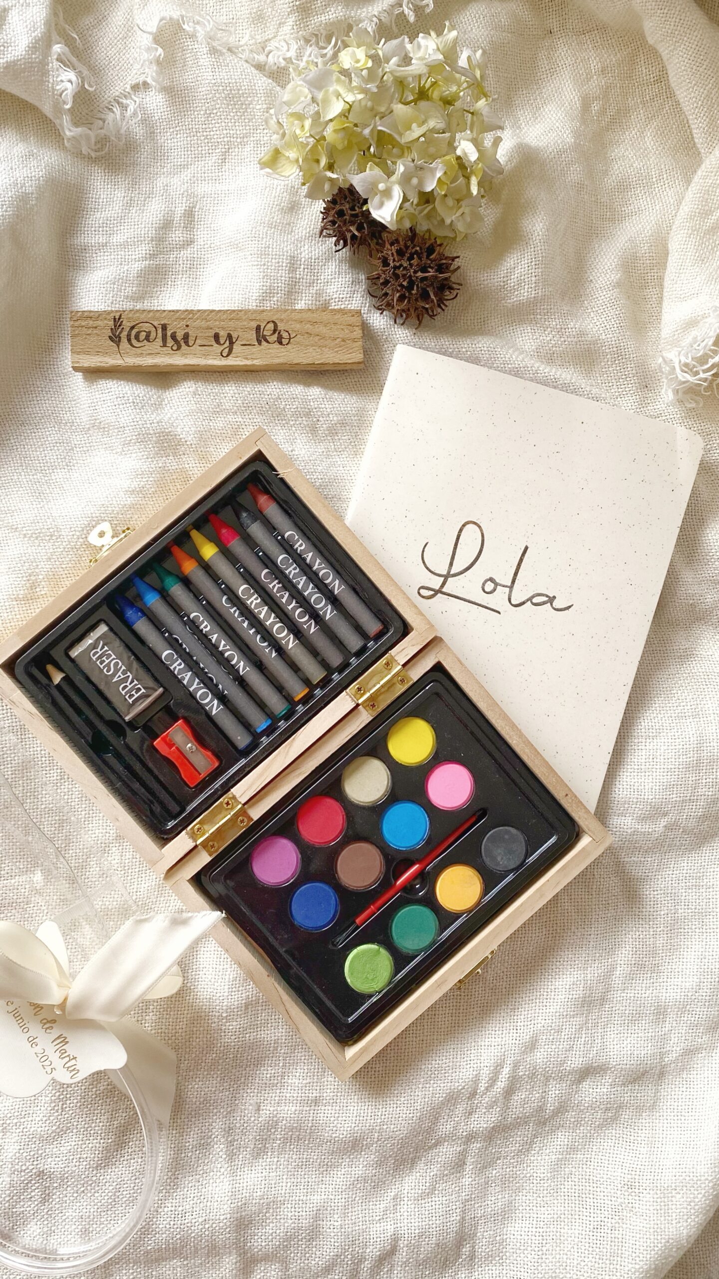 Sabemos que en las celebraciones más especiales, los niños también quieren su propio momento de magia. Por eso hemos creado este Kit Artístico Personalizado, un rincón de creatividad guardado en un precioso estuche de madera.