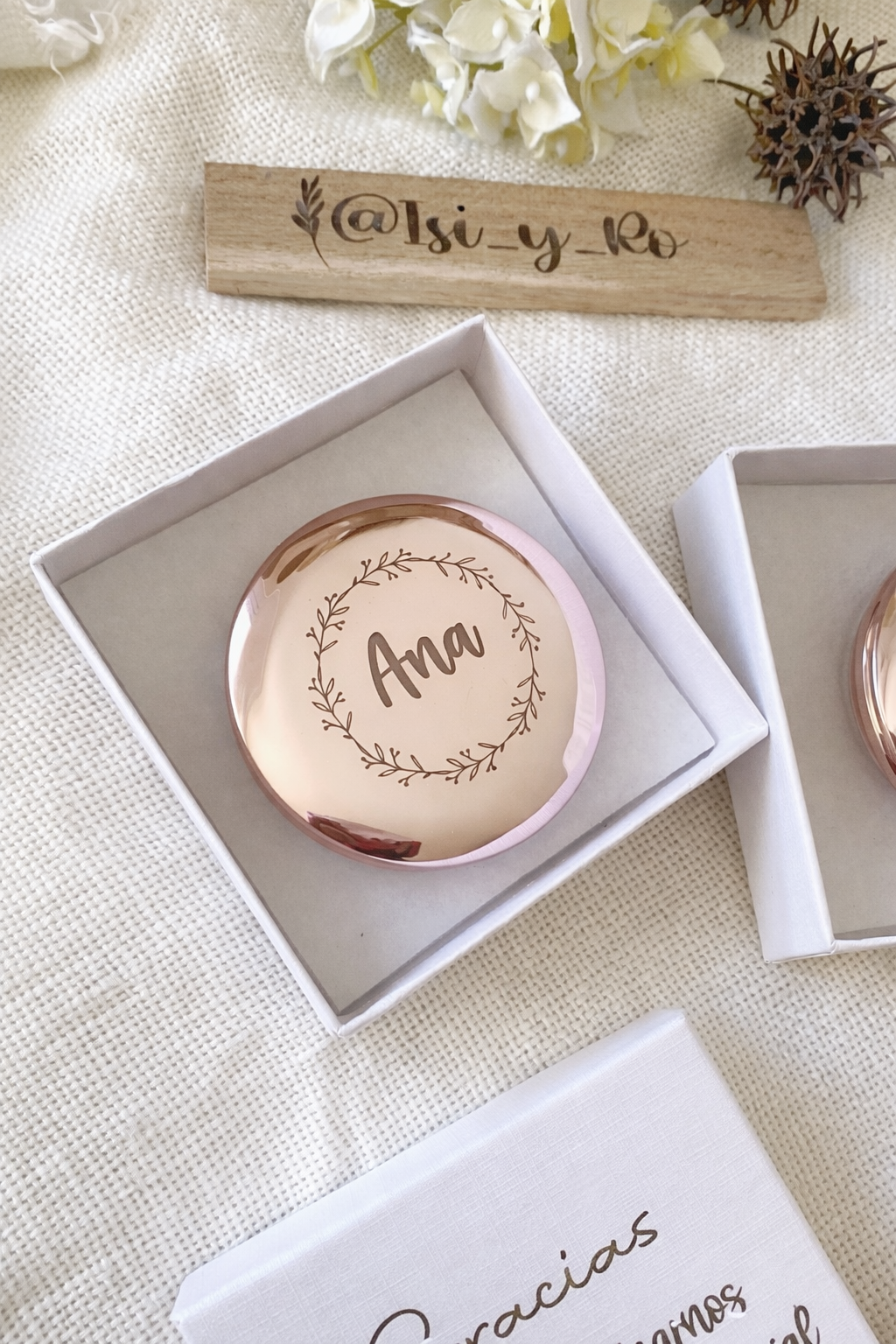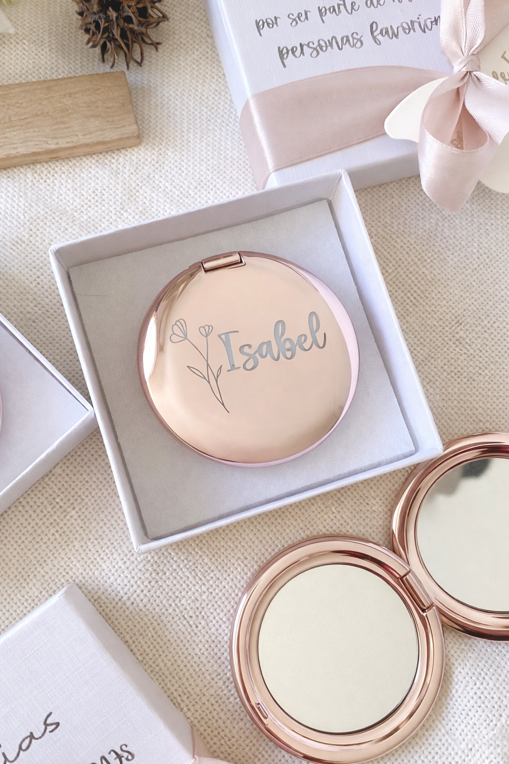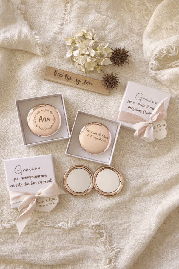 Espejo Personalizado Oro Rosa – Detalle para Invitados Eventos y Bodas