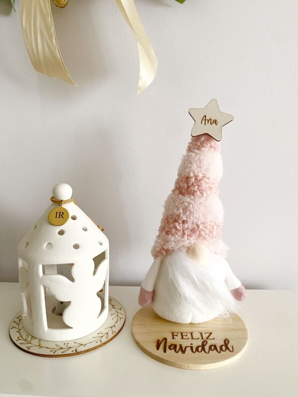 - Lo recibirás con una base de madera contrachapada grabada con el mensaje «Feliz Navidad»